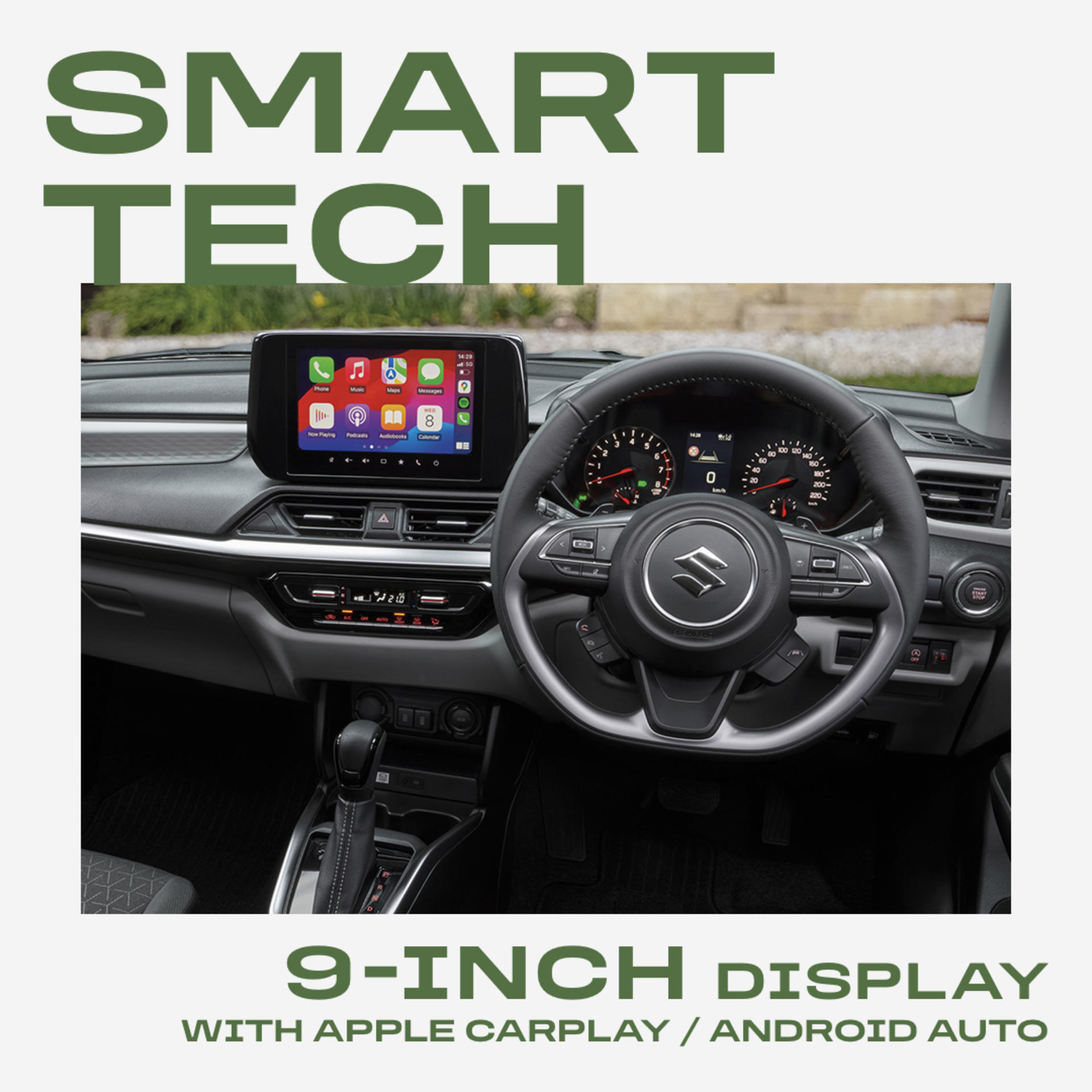 Every Swift Hybrid features a 9-inch high-definition touchscreen, angled toward the driver for easy use, and includes: